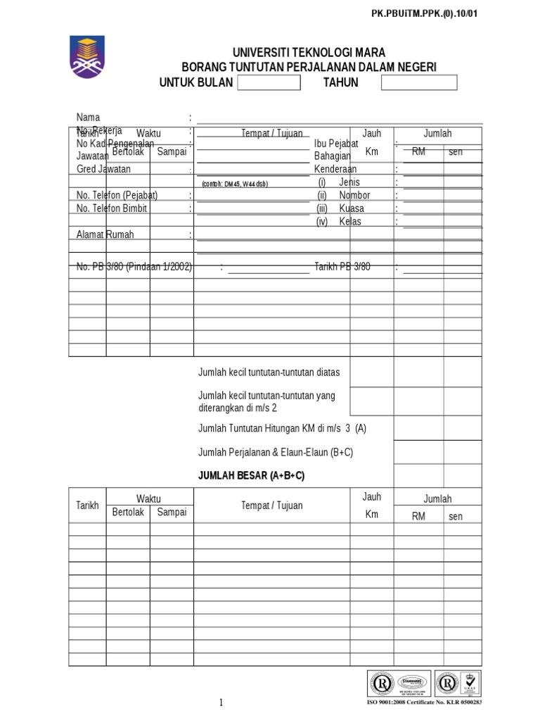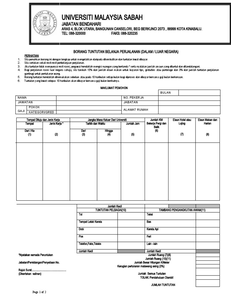 Contoh Borang Tuntutan Perjalanan Pdf
